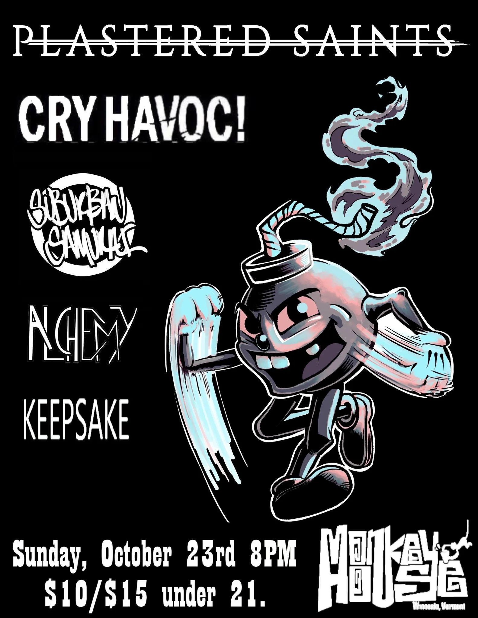 Plastered Saints!! The return of Cry Havoc!! Suburban Samurai!! Alchemy!! Keepsake!! 5 dope acts each reppin a slightly different shade of the genre.